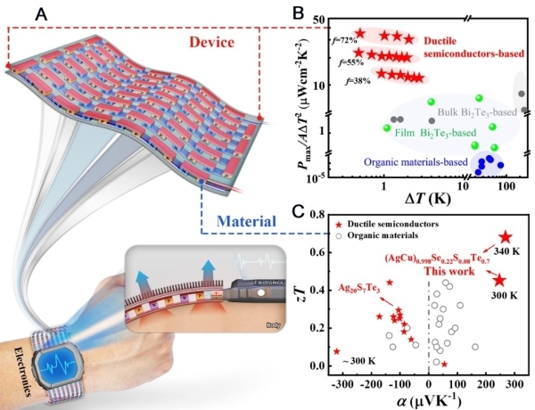 该研究为柔性热电技术提供了全新的解决方案,能将人体或环境热量快速有效地转换成电能,具有稳定可靠、长寿命、超薄、可弯曲、全天候工作等优点,有望为柔性电子提供高效的自供电技术。