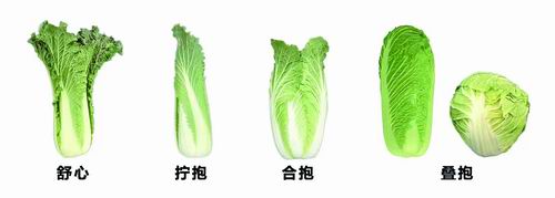 大白菜叶球的几种抱合方式。河北农业大学供图