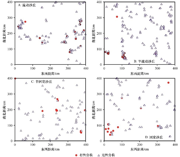 沙鞭(Psammochloa villosa)作为干旱地区流动沙丘先锋物种,对于干旱风沙环境具有极强生态适应能力,在流动沙丘上分布的沙鞭斑块与流沙斑块相互镶嵌,已成为流动沙丘的独特景观,主要分布在内蒙古库布齐沙漠、浑善达克沙地西部、巴丹吉林沙漠和甘肃河西走廊沙地等地区。目前,关于不同沙丘生境下沙鞭种群空间分布与繁殖策略特征的研究尚不清楚。