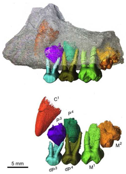 研究团队还发现,此前发现于印度中中新世(距今12.5-13.8百万年)的一枚下第三臼齿Kapi ramnagarensis, 不是长臂猿,而是另一种原始的小型猿类。