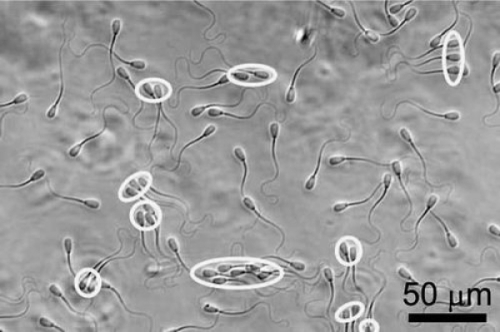 科学家指出,成群结队游泳可以帮助精子穿过厚厚的生殖道和子宫黏液逆流而上,这些黏液往往会冲走那些独自游泳的精子。