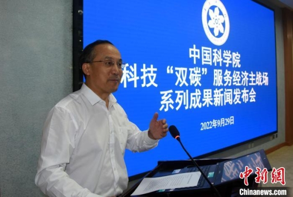 中科院副院长张涛院士出席该院科技“双碳”服务经济主战场系列成果新闻发布会并致辞。中新社记者 孙自法摄